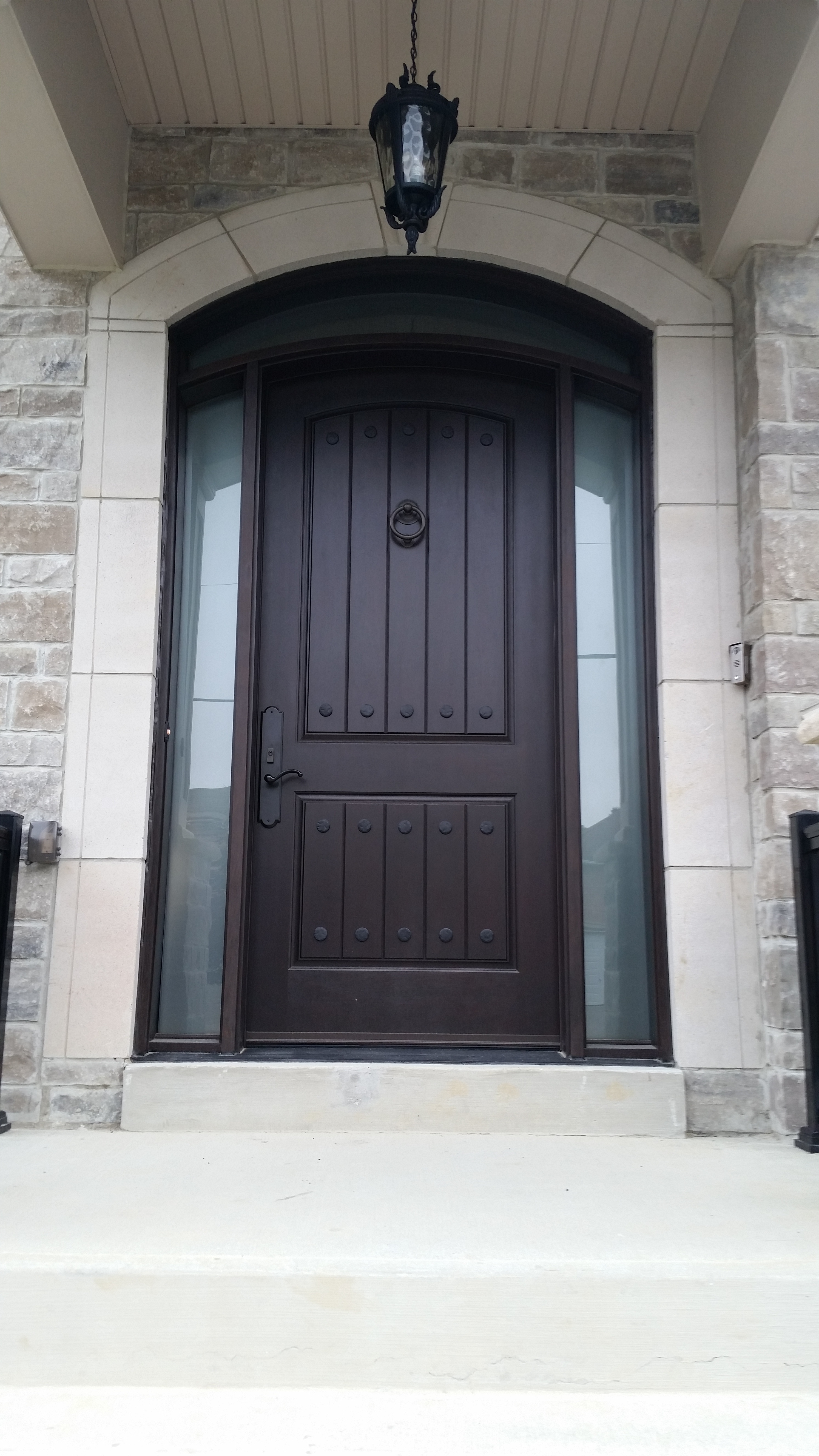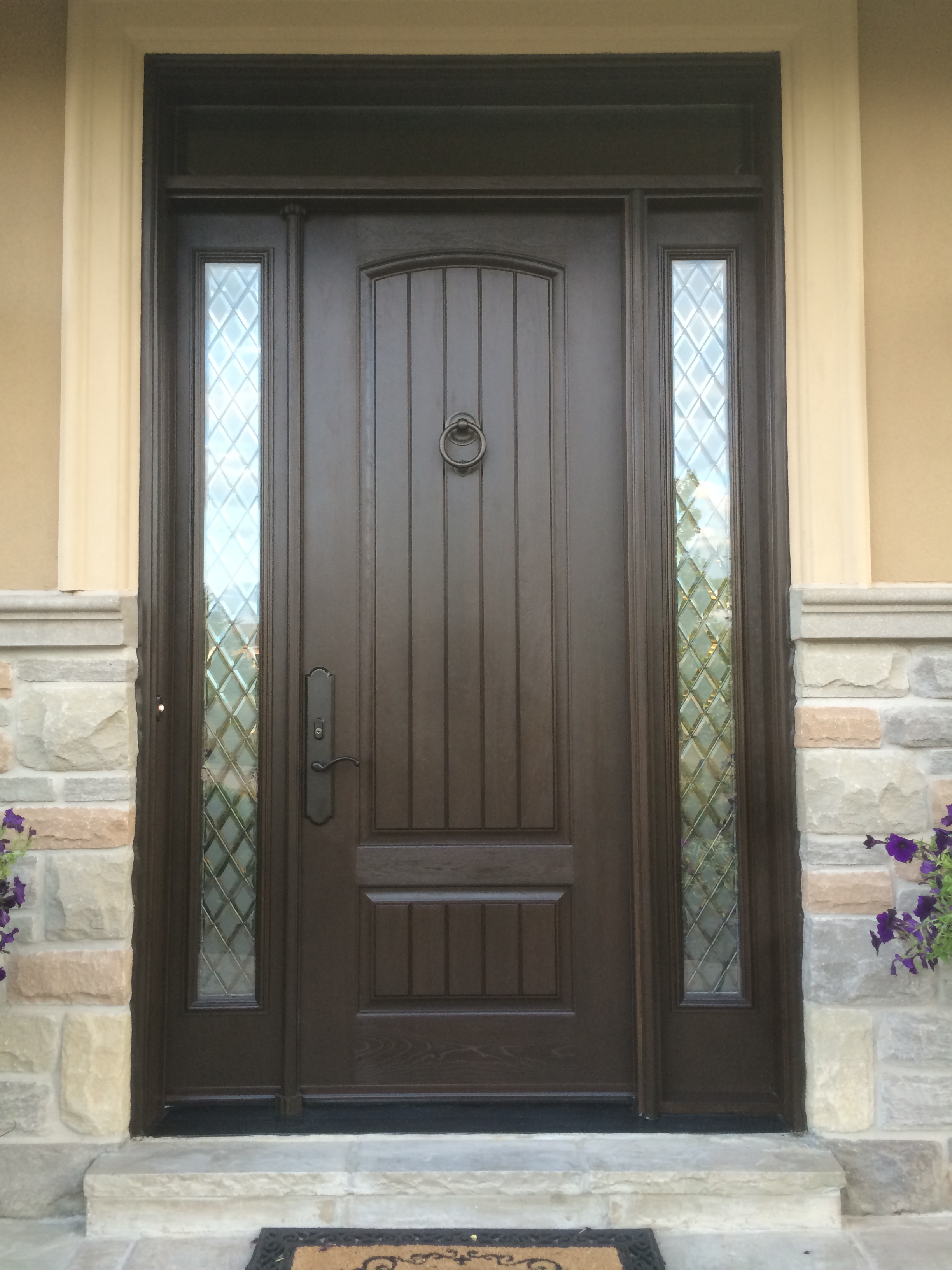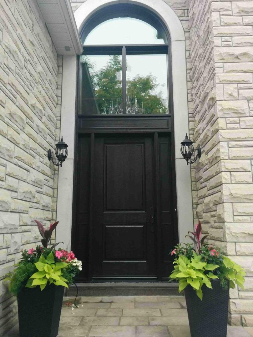8 ft Mastergrain Fiberglass Doors with 2 sidelites and custom arch transom