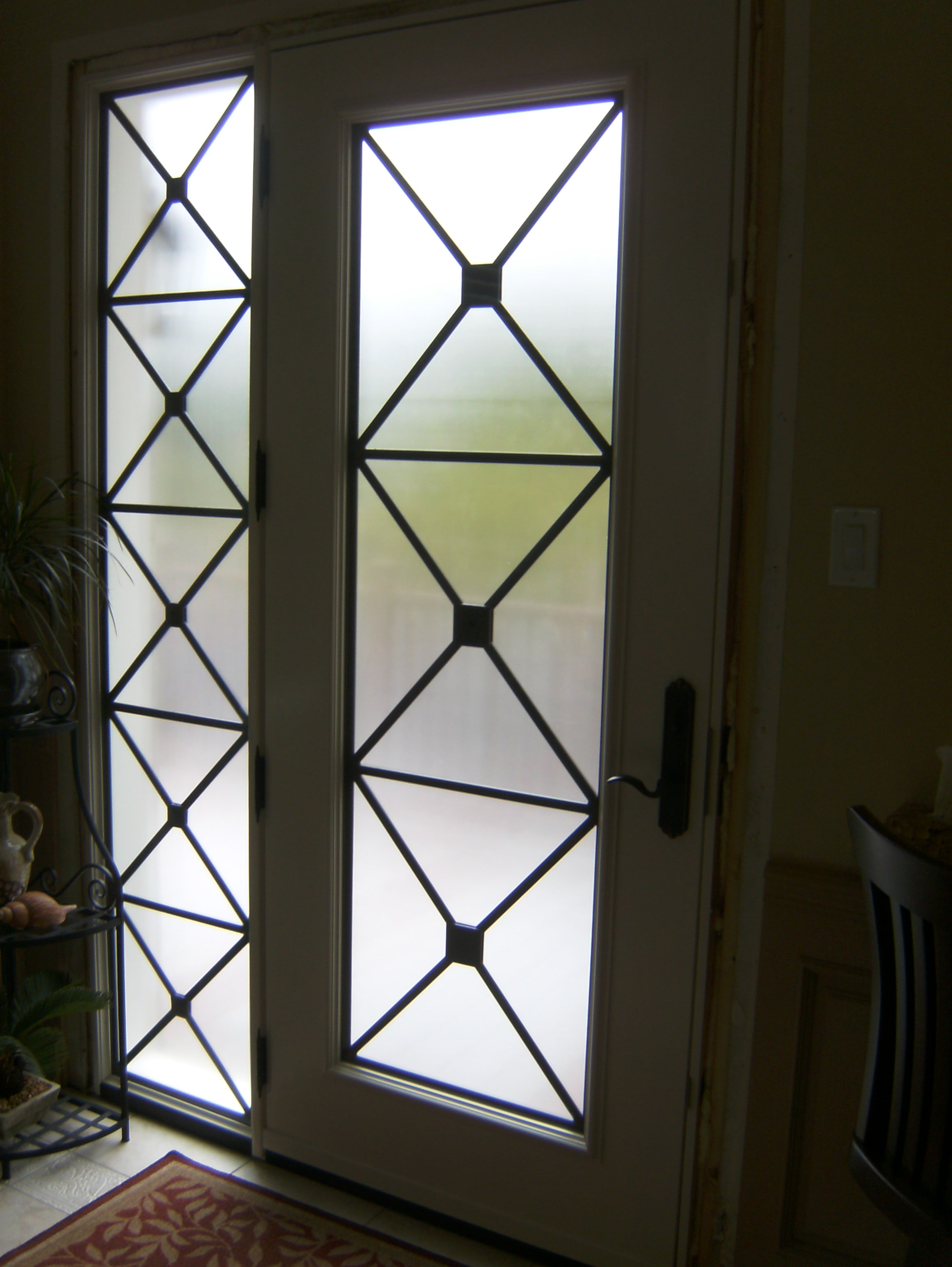 Millenial Wrought Iron Doorlite with Frosted Sidelites