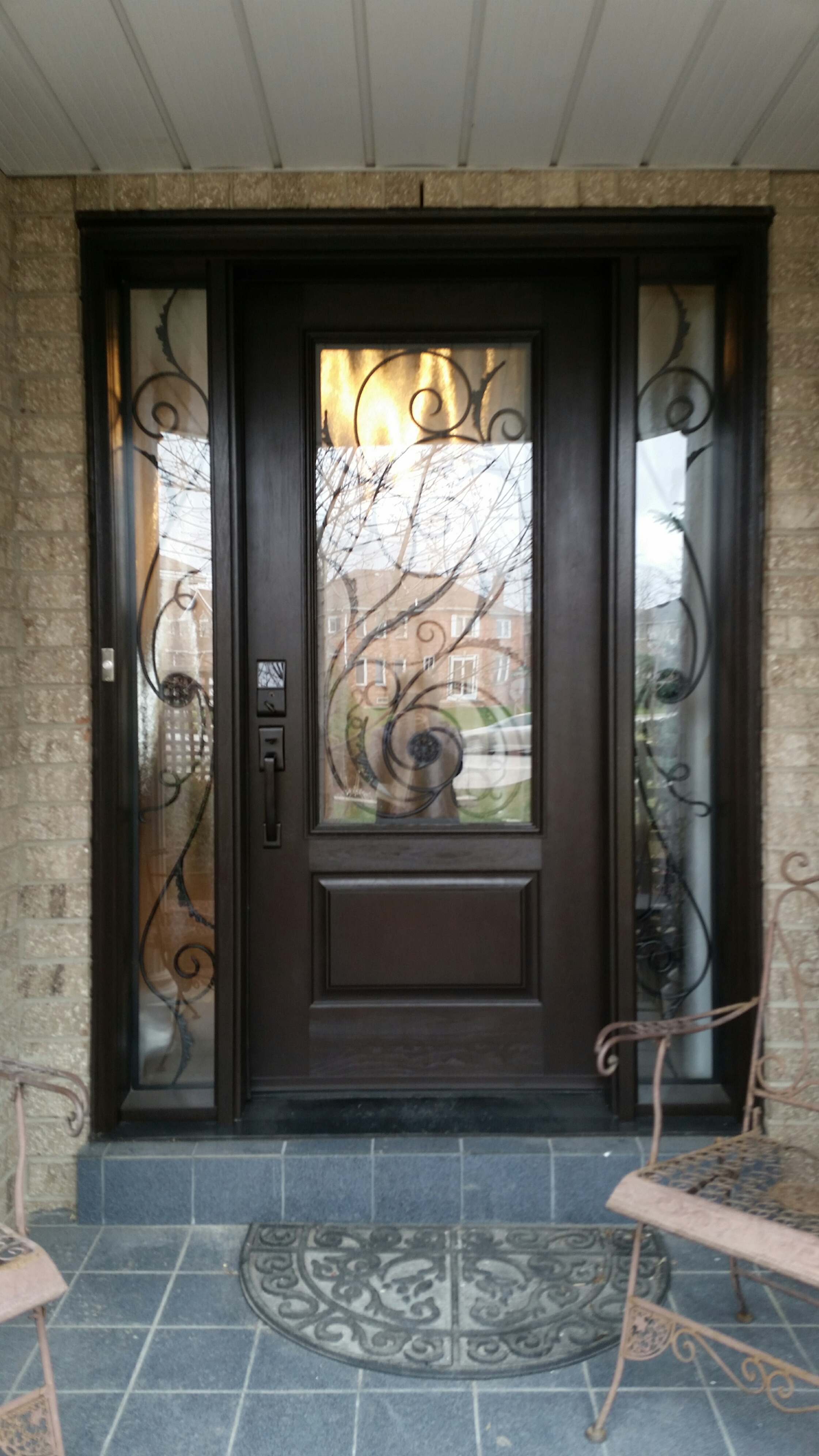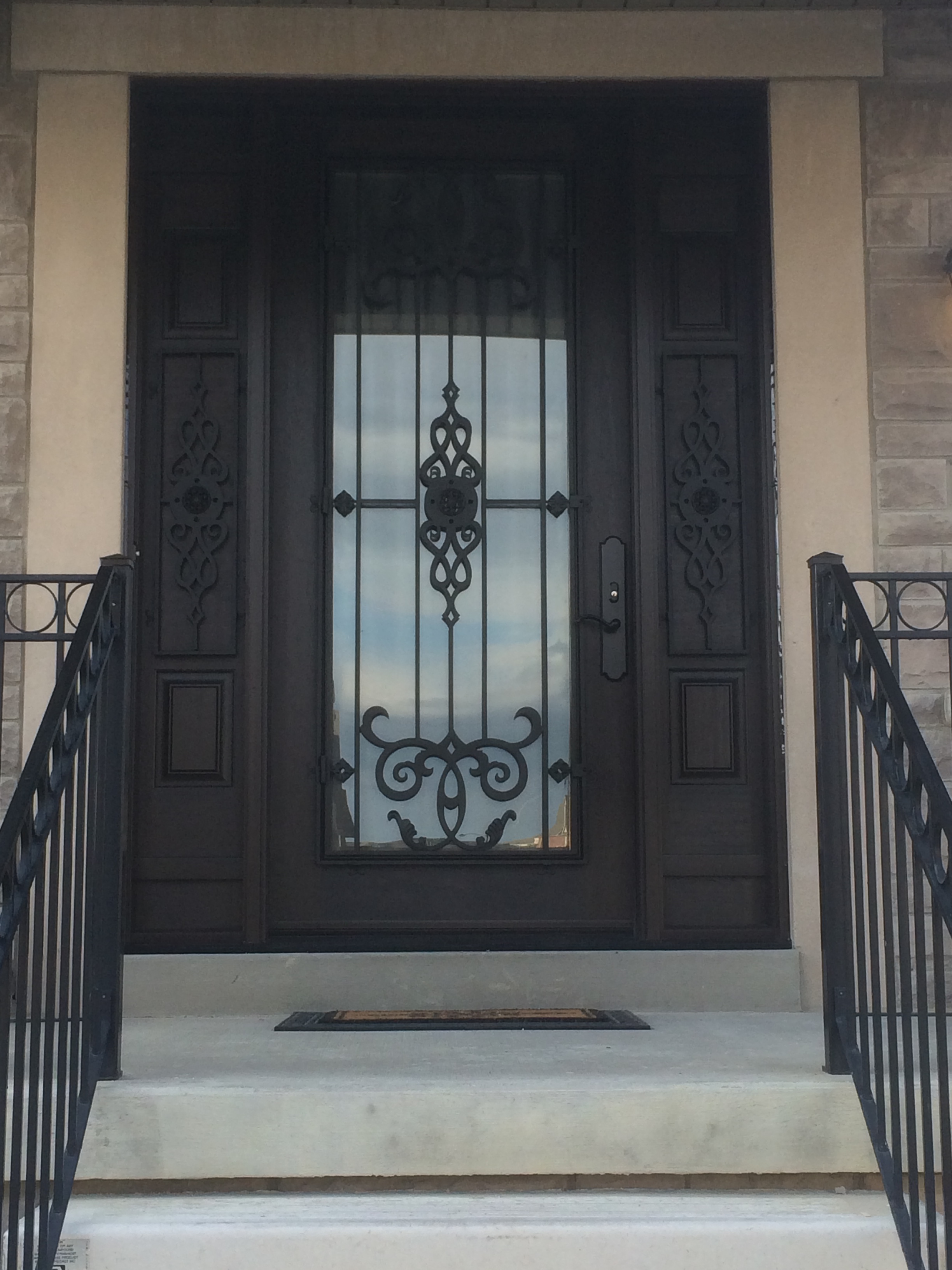 Double Fiberglass door with 2 Sidelites and Custom Wrought Iron Design