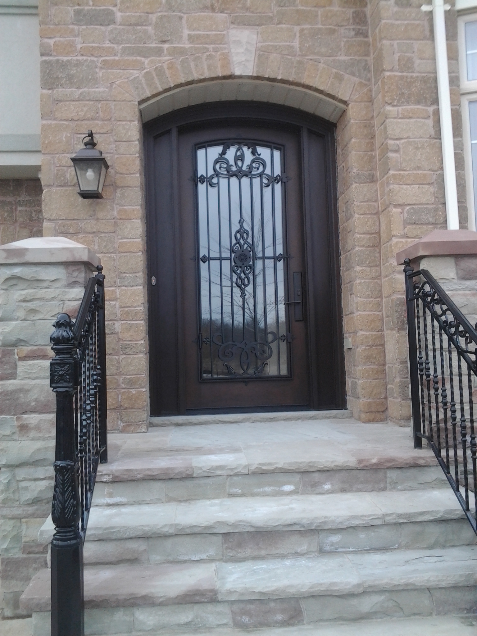 8 ft steel door with executive molding wrought iron and matching round transom