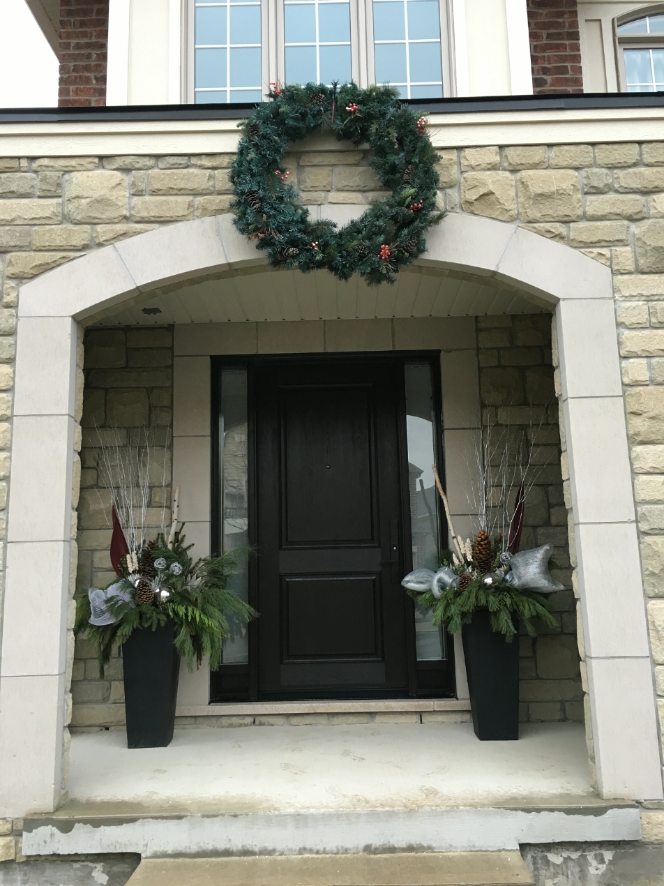 Fiberglass Arch Door with outside grill and filled Sidelites