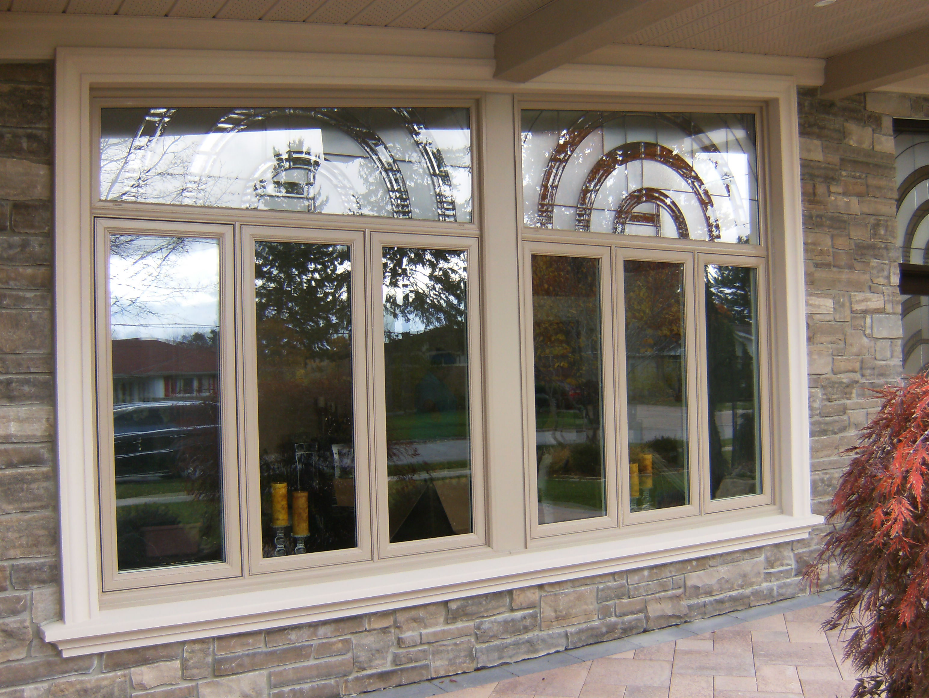 Custom windows with shaped transom and grills
